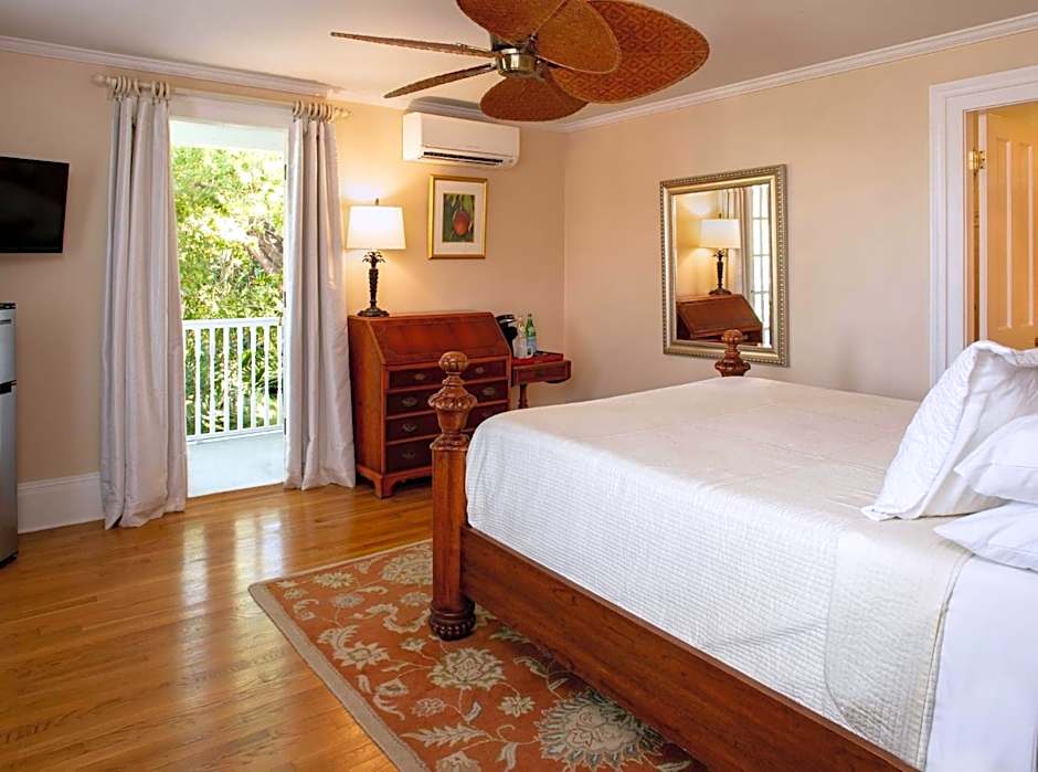 These rooms are located on the courtyard overlooking the fountain. They feature king beds and all original art work from Key West artists. They also have veranda's and baths with walk in rain showers. Not Pet Friendly.